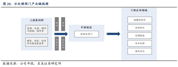 公司深耕阀门领域,产品型谱齐全。公司主要生产球墨铸铁、铸钢、不锈钢等材质的闸阀、蝶阀、止回阀、过滤器等,为市政给排水系统、污水处理系统、消防给水系统、空调暖通系统及燃气系统提供配套产品及解决方案。